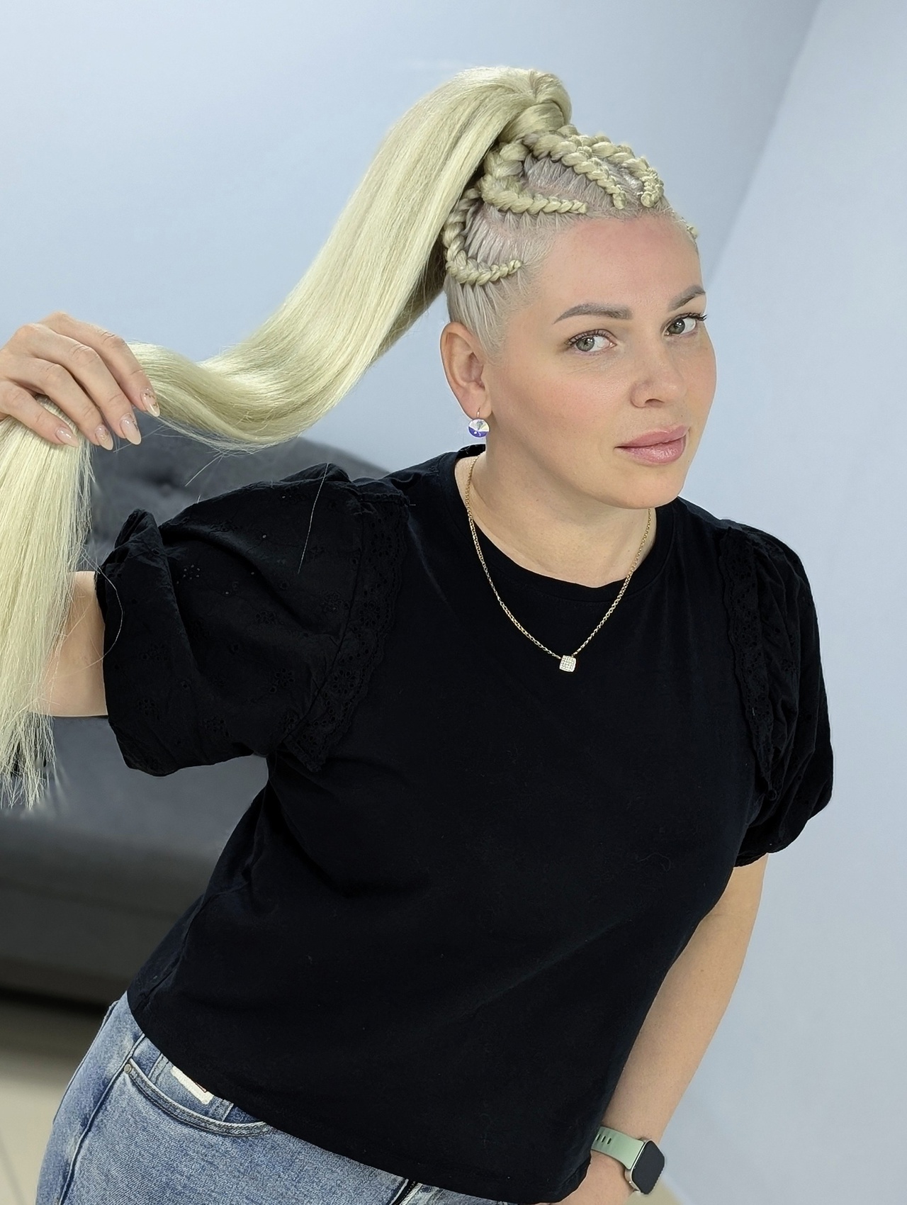 - Нарощенные волосы — на капсульное и какое либо другое наращивание косы не плетут.